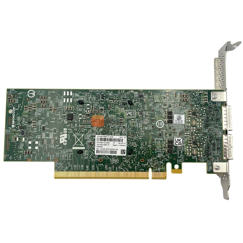 NIC PCIe cổng kép 200/100/50/40/25/10G tuân thủ tiêu chuẩn với tốc độ đường truyền, thông lượng song công hoàn toànNgười mẫuBCM957508-P2100GVòng đờiTích cựcHàng tồn kho của nhà phân phốiĐúngBảo hành3 năm